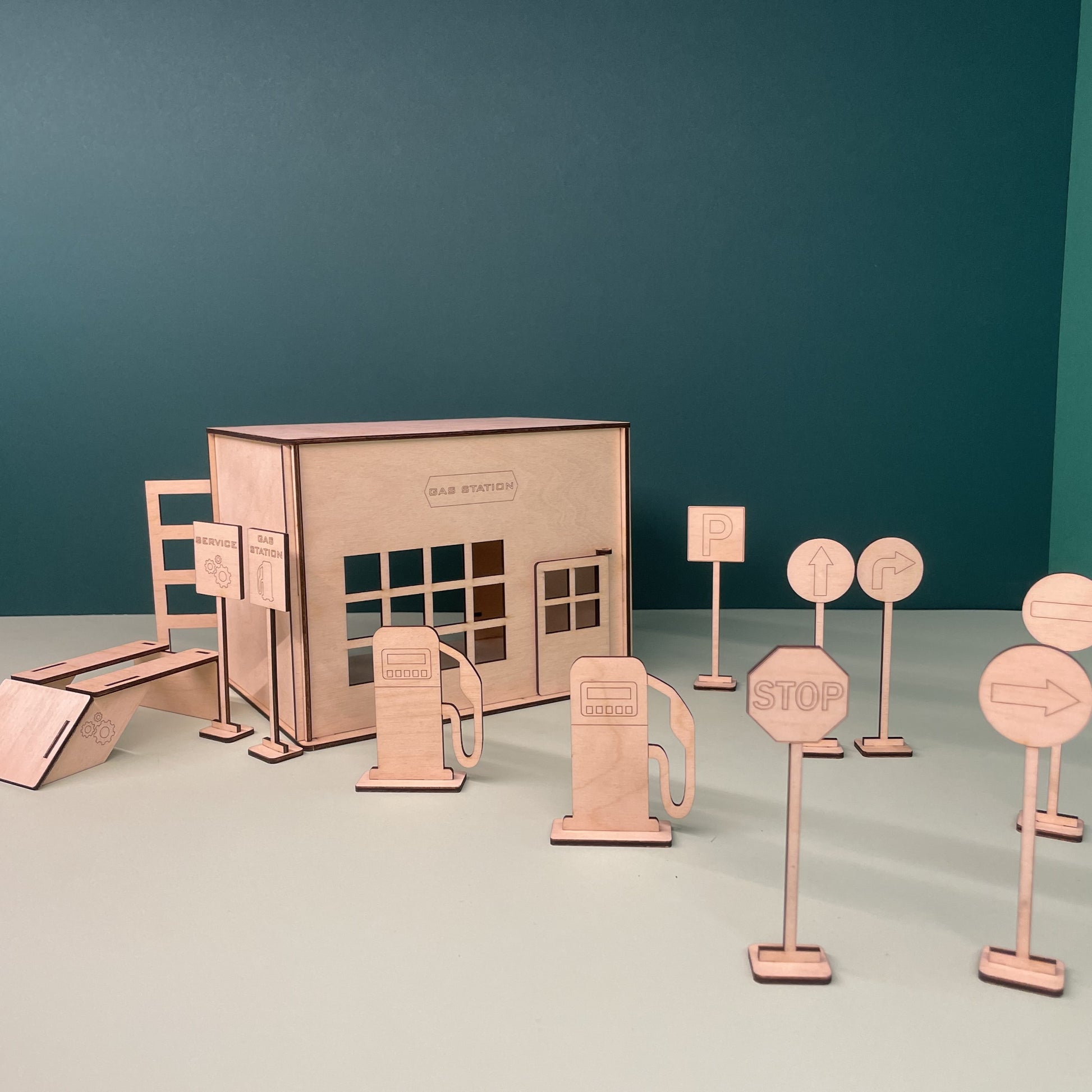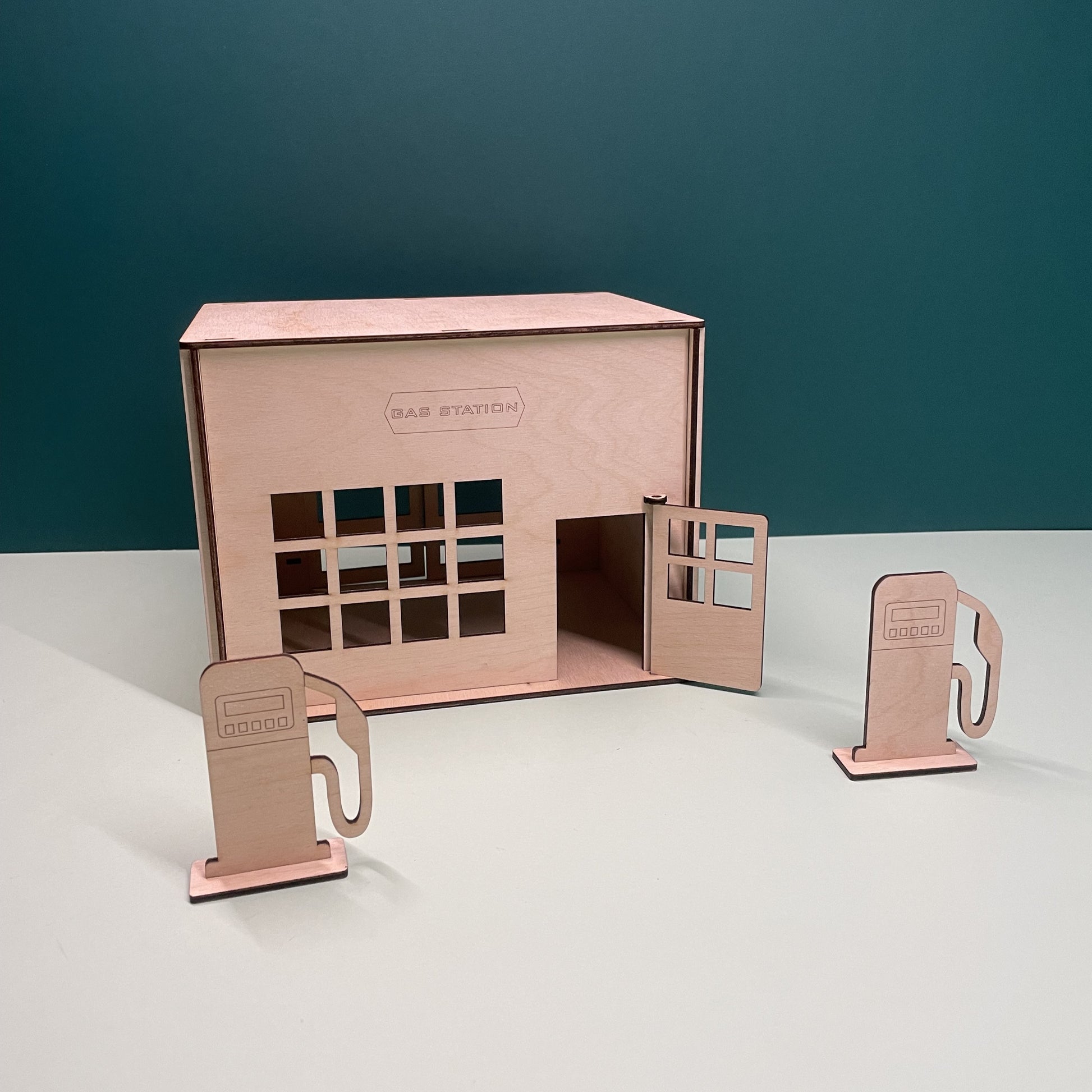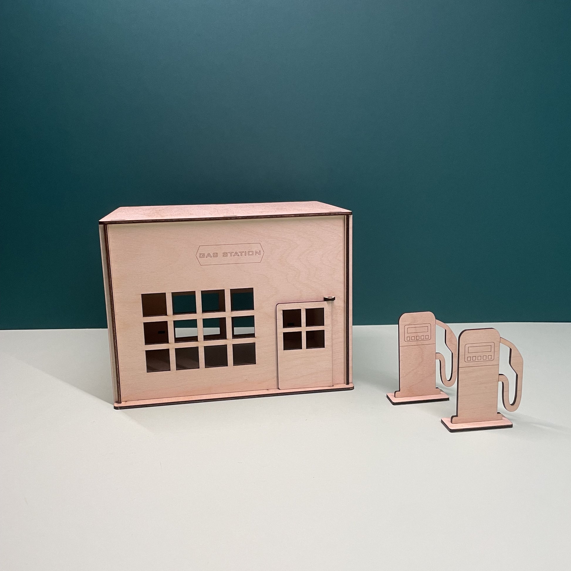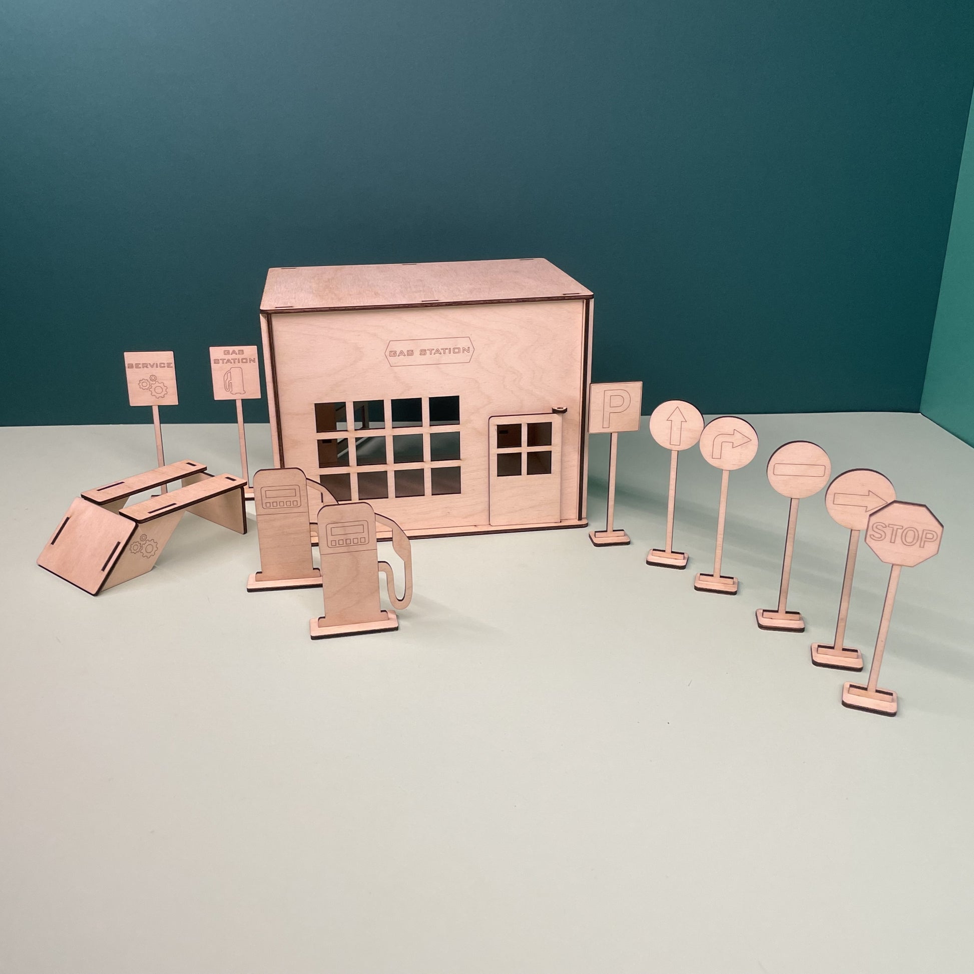 Fuel your child's imagination with this wooden gas station / Car service toy. Perfect for endless hours of imaginative play, this toy will have your little one revving up their creativity in no time, just endless fun! (Fuel not included, sorry!)