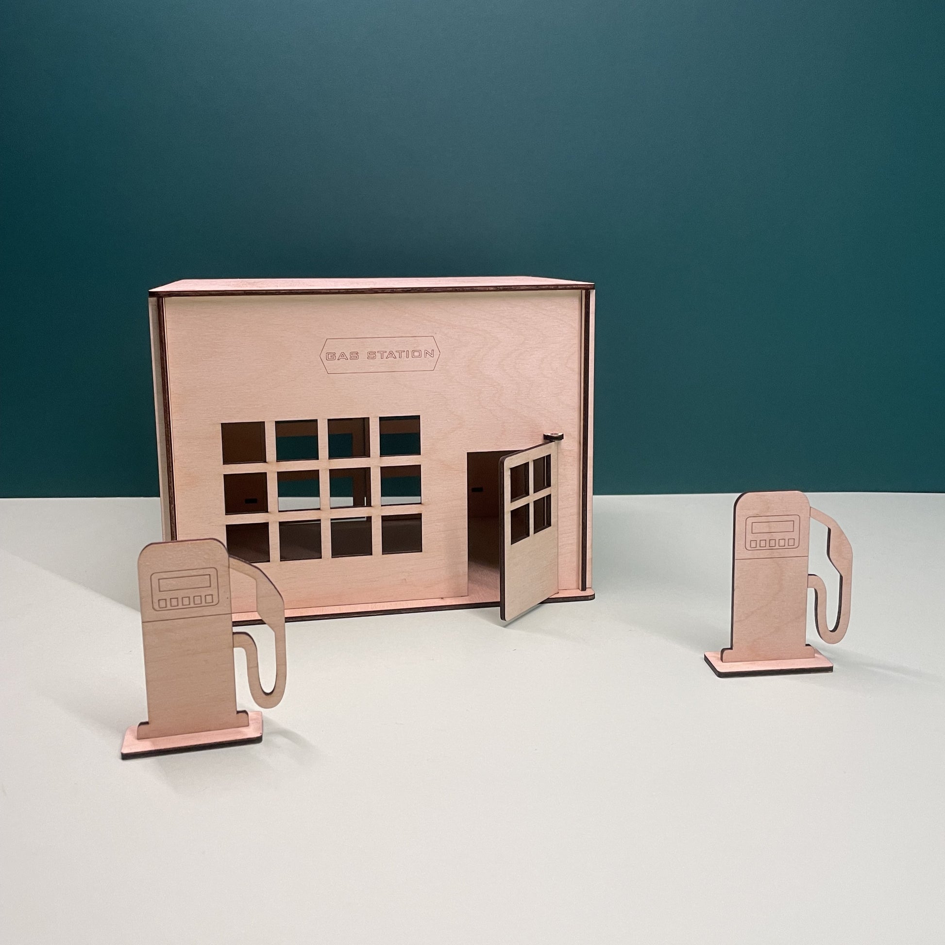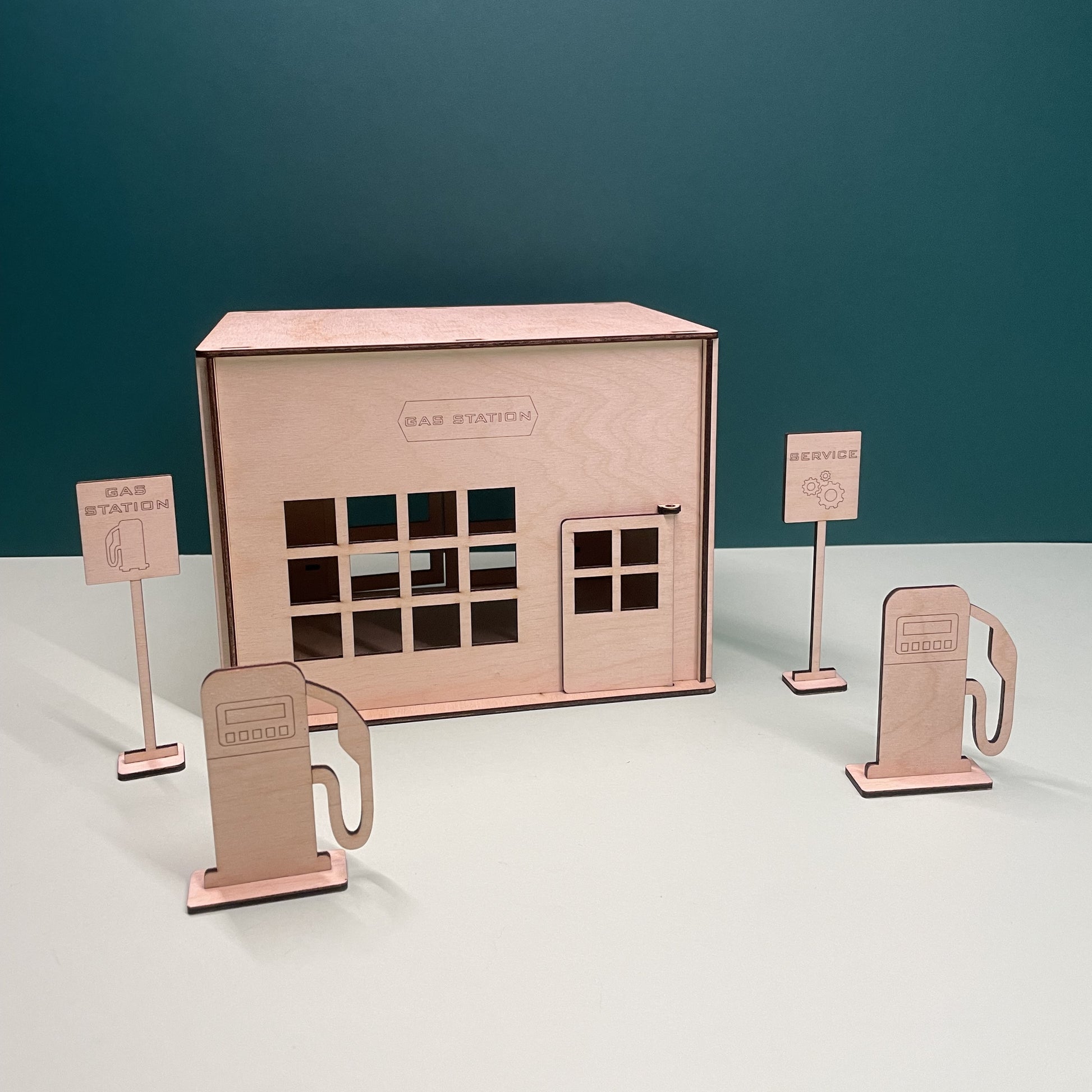 Includes dismantled gas station and assembly instructions (Easy assembly without tools)