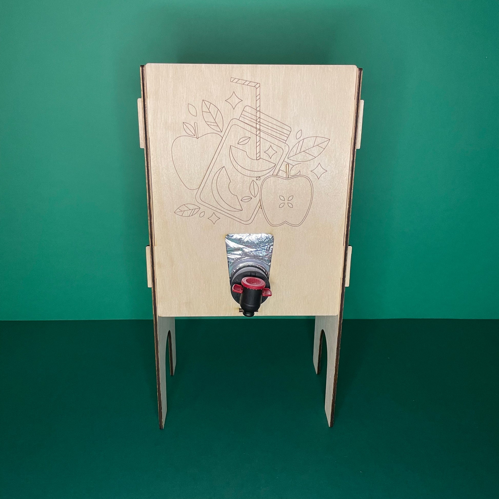 Juice pack holder so you never have to worry about spilling juice from the pack. It will also work not only for apple juice but also for any other drink that is in a film package with a tap. Fits both 3L and 5L packages.