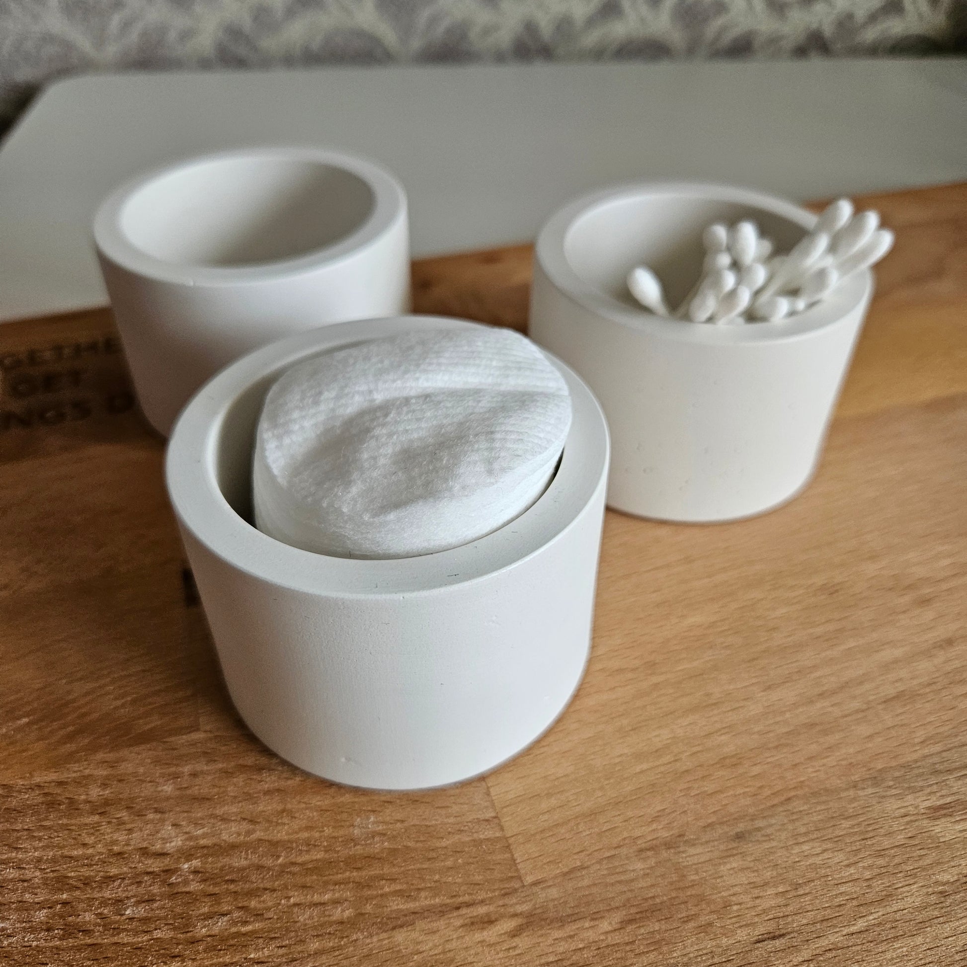 This handmade round jar is crafted from sturdy gypsum material, perfect for storing various items. Its unique round shape adds a touch of style to any space. A must-have addition to your home decor collection.