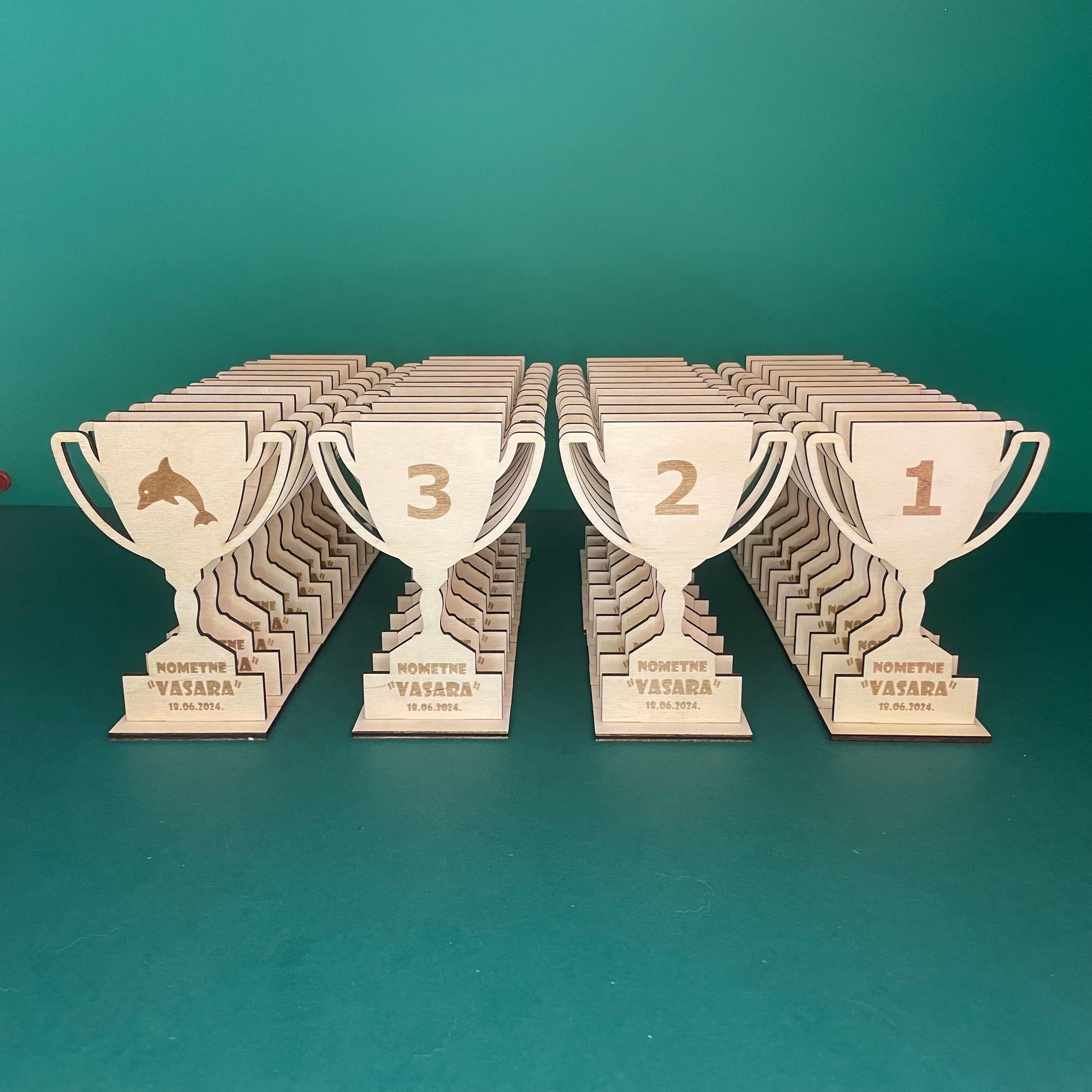 Add a personal touch to your next event with our Looking to reward your team with a unique and thoughtful gift? Our customizable Wooden Trophy Set is the perfect way to show your appreciation. Made with high-quality plywood, this set is a lasting reminder of their hard work and dedication. Personalize it with your team's name or logo for a truly special touch.